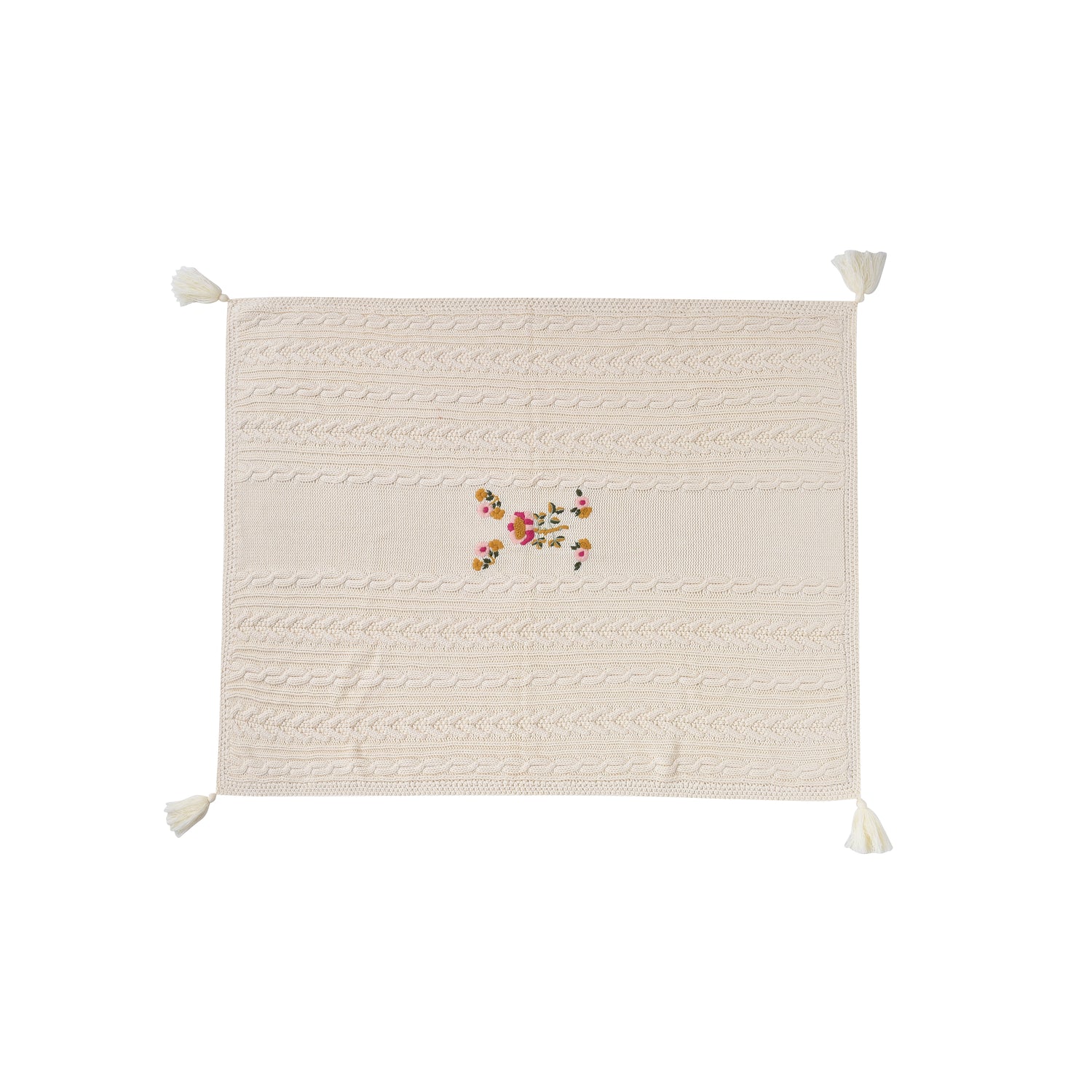 This season the knitted plaid is back with a new embroidery. A pretty floral pattern placed by hand on a cotton knit for cocooning even in summer.